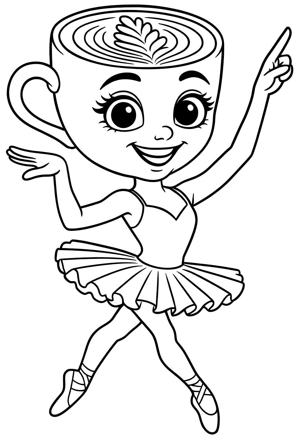Очаровательная Балерина Капучино кружится в танце, словно взбитые сливки в чашке кофе! Раскрась её наряд, чтобы добавить волшебства её балету.