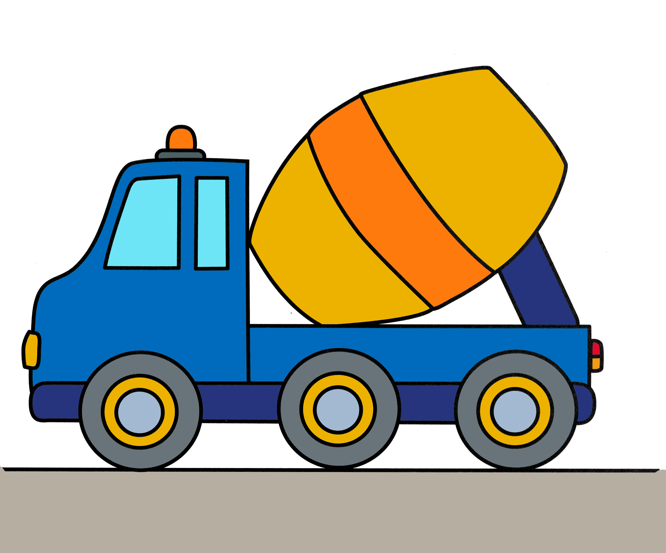Бетономешалка непрерывно крутит свой барабан, готовя смесь для строительства. Она важна на любой стройке — ведь именно она создаёт прочный фундамент. Раскрась её как настоящую строительную звезду!