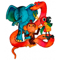 Как-то раз слонёнок, попугай, удав и мартышка сидели и разговаривали. Вдруг попугай встал на лапки и сказал: