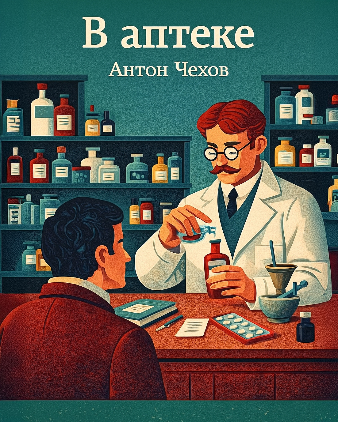 Провизор стоял неподвижно и, закинув назад голову, читал. На обращение к нему Свойкина он не ответил ни словом, ни движением, словно не слышал... Кассир громко зевнул и чиркнул о панталоны спичкой... Стук мраморной ступки становился всё громче и звонче. Видя, что его не слушают, Свойкин поднял глаза на полки с банками и принялся читать надписи... Перед ним замелькали сначала всевозможные «радиксы»: генциана, пимпинелла, торментилла, зедоариа и проч. За радиксами замелькали тинктуры, oleum'ы, semen'ы, с названиями одно другого мудренее и допотопнее.