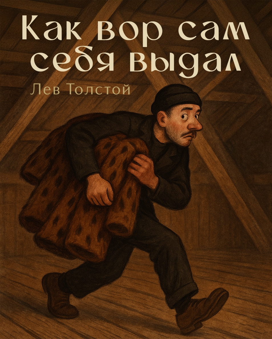 Один вор залез ночью к купцу на чердак. Он отобрал шубы, полотна и хотел слезать, да споткнулся на перемёт и загремел. Купец услыхал, что что-то зашумело над головой, разбудил работника и пошел со свечой на чердак. Работник разоспался и говорит купцу: