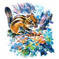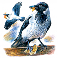 Под самым окном нашего домика зимой я устроил для птиц кормушку. На прикреплённую к сучкам рябины дощечку мы сыпали хлебные крошки, кашу, мелкие кусочки сала и мяса. Всякий день сюда стали слетаться черноголовые бойкие синицы, другие лесные птички. Пухлые на морозе синички бойко клевали рассыпанный корм.