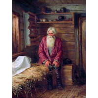 Передо мной стоит старуха-хозяйка в новой клетчатой паневе, в новых котах.