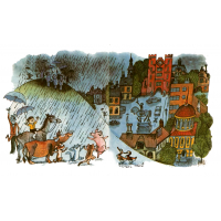 Высоко-высоко, даже выше ограды; а потом ещё выше — выше домов; а потом ещё выше — даже выше башен и колоколен, а потом… Но в эту минуту над ним пролетал самолёт, и Боб со всего размаха — бац! — набил себе здоровенную шишку, стукнувшись о крыло самолёта.