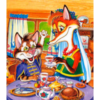 Въехал Змей на Калинов мост. Тут под ним конь споткнулся, ворон встрепенулся, сзади пёс ощетинился. Чудо-юдо коня плёткой по бёдрам, ворона — по перьям, пса — по ушам.