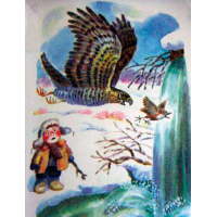 — А вот как, — сказал козодой-сетконос. Да как разинет пасть — все птицы так и шарахнулись от него.