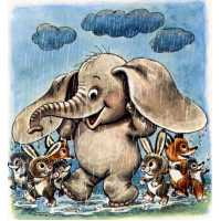 Шёл дождь, не разбирая дороги, по лугам, по полям, по цветущим садам. Шёл, шёл, споткнулся, вытянул длинные ноги, упал… и утонул в последней луже. Лишь пузырьки кверху пошли: буль-буль.