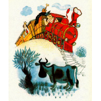 Пришлось ему спуститься обратно в долину. Там он наломал толстых веток и сделал себе ходули. Шесть ходулей — для каждой ноги по ходуле. Потом опять полез на гору.