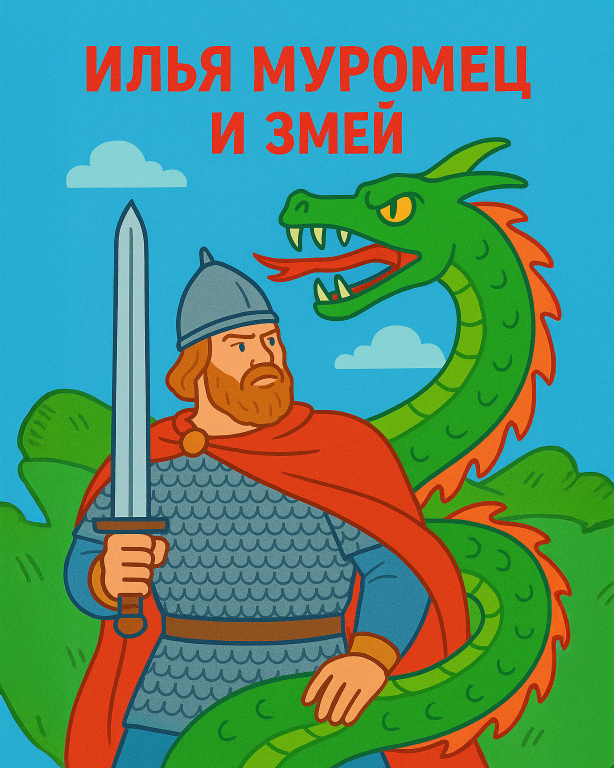 Вскоре царь поехал в соседнее королевство. Там беда: двенадцатиглавый змей летает к королевне, всю ее измучил. "У меня есть богатырь", - говорит царь, - "он змея победит!" Вернувшись, он рассказал Илье: "Сможешь змея одолеть?" "Смогу!" - ответил Илья.