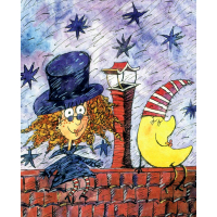Но Петушок-на-крыше не дремал. Он улучил минутку, пока ветер трепал и раскачивал деревья, и начал медленно-медленно поворачиваться.