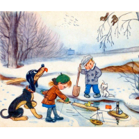 Я закинул удочку и стал ждать, когда поймается рыба, но рыба не ловилась, потому что Маша скучала и всё время громко пела. Когда она перестала петь, я сразу поймал не очень большую рыбу, но она соскочила с крючка и уплыла с моим червяком во рту.