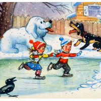Весь вечер мы смотрели в окно и ждали салюта. Все улицы были украшены электрическими лампочками и флагами, и дома были похожи на дворцы из сказки. Вдруг всё небо осветилось и раздался залп — выстрелило много пушек. У нас зазвенели стёкла, и сразу в небо полетели разноцветные звёзды. Это были ракеты.